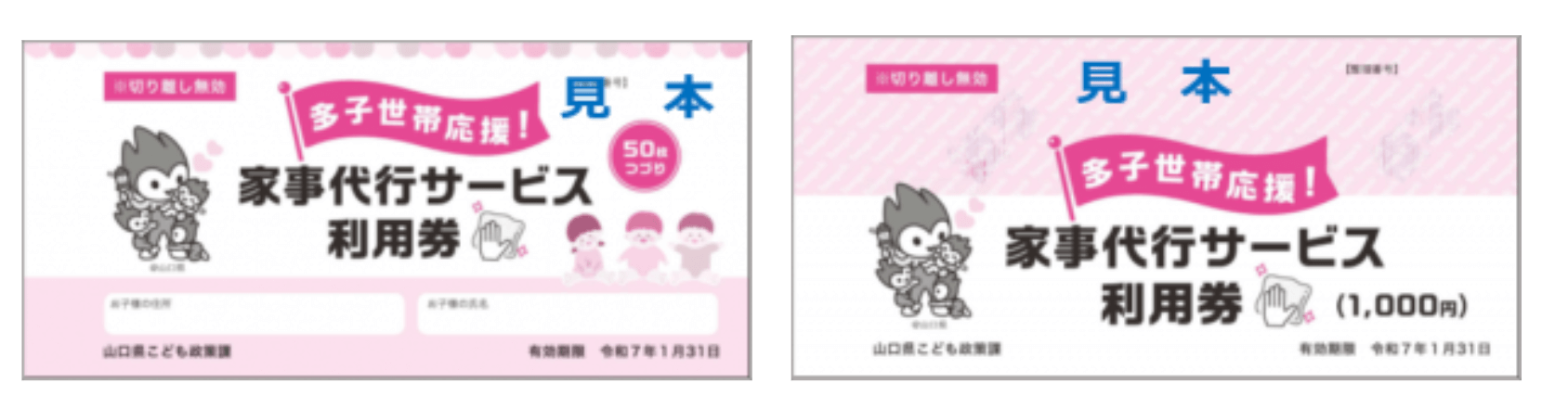 山口県こども政策課が発行している「やまぐち子育て連盟・多子世帯応援事業 家事代行サービス利用券」が、なんと!私たちダスキン江崎支店でもお使いいただけます🎉